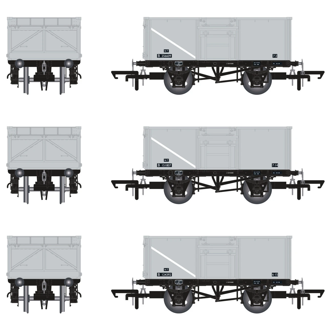 With all British Railways’ 16T types designed and tooled, this first run follows the story of the unfitted Morton braked wagons, with 1/108, 1/109 and MCO rebodied versions being released in a variety of liveries and running gear combinations.