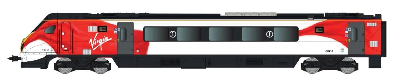 The Class 221 are similar to the Class 220 Voyager units, but were built with a tilting mechanism enabling up to six degrees of tilt to allow higher speeds on curved tracks, most have five coaches, and they have a different bogie design. They have a maximum speed of 125 mph (200 km/h).