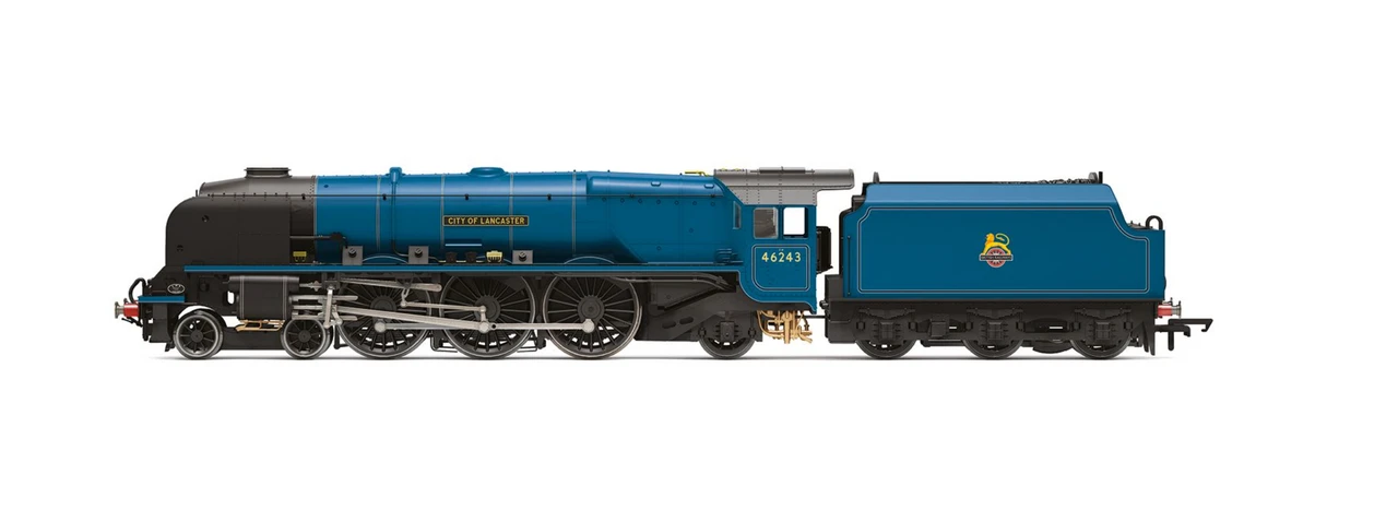 No. 46243 comes complete with a sleek and smooth BR blue livery. The running number, ‘46243’, and the name, ‘City of Lancaster’, are incorporated on the body sides. An Early BR crest is adorned on the tender. This model is DCC-ready and is compatible with our HM7000 21-Pin decoder. The accessory bag contains an NEM pocket for the bogie, a bar coupling, a hook coupling, two steps, an articulated small coupler assembly, a brake rod, a tender brake rod, a pony truck wheel axle assembly, a locomotive vac pipe and two draincocks.